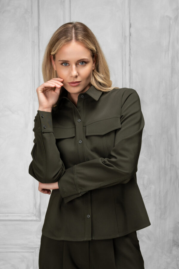 The dark chaki military shirt