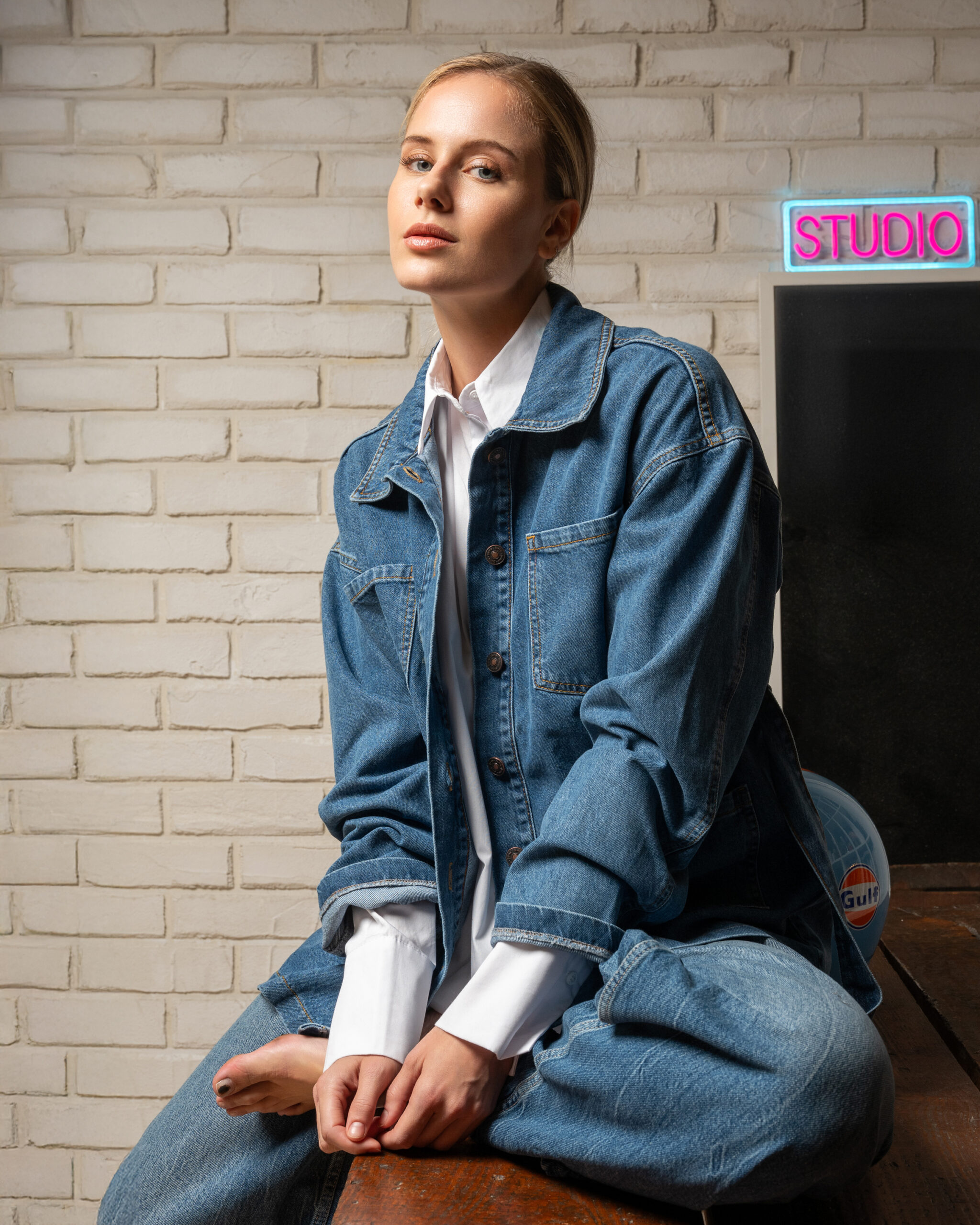 The denim parka, 100% cotton, comfort size, [model is 1,78 and wears M]