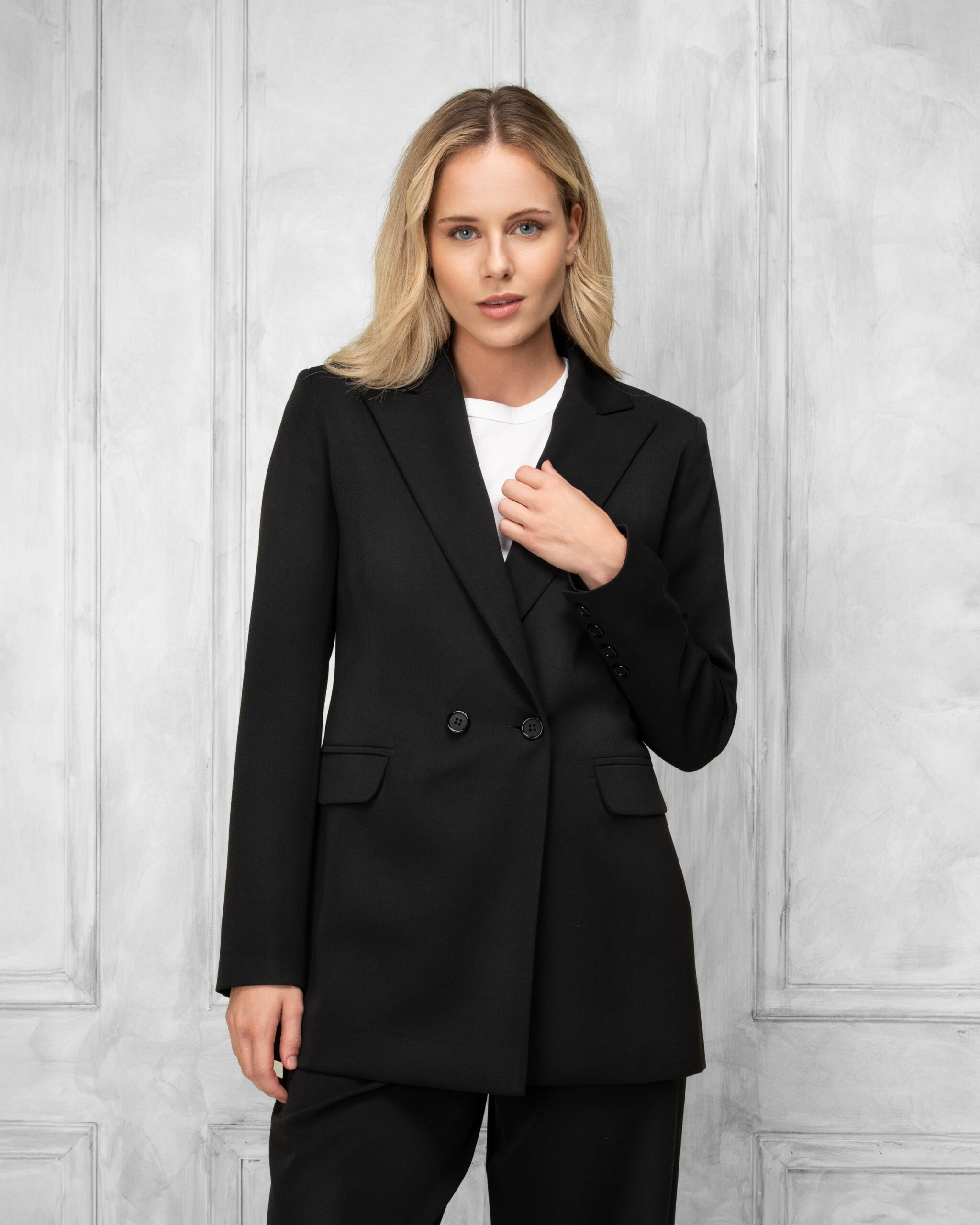 The double breasted, tailored jacket. True size. 73%pes-21%ray-6%sp